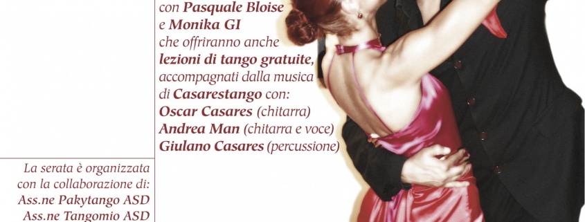 I ballerini Pasquale Bloise e Monika GI offriranno, dalle ore 19.00 presso il D cafè, a tutti gli appassionati, lezioni di tango gratuite, si continuerà a ballare tutti insieme per tutta la serata con la musica di Casarestango con: